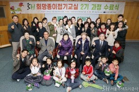 연수 후기 게시물 검색 검색대상 제목 내용 제목+내용 검색어 필수 종이문화재단ㆍ사랑의친구들ㆍ종이나라 와 함… 종이문화재단ㆍ사랑의친구들ㆍ종이나라 와 함께하는 조이! 대한민국 어린이종이접기(Jongie Jupgi)급수 마스터 자격 수여식 종이문화재단 세계종이접기연합(이사장 노영혜)이 (사)사랑의 친구들(회장 김성재)과 종이나라(회장 정도헌)와 함께 운영했던 지역아동센터 어린이들을 대상으로 한 <조이! 대한민국 어린이종이접기(Jongie Jupgi)마스터>교육 수여식이 26일 오후 종이문화재단에서 열렸다. 지난해 2월 첫 수업을 시작한 이들 학생들은 3급과정, 2급과정에 이어 1급 마스터 과정까지 모든 수업을 마치고 마침내 어린이종이접기마스터 자격증과 금빛 메달을 취득했다. 이 프로그램은 지난 1월 18일 사랑의친구들과 함께 서울 지역아동센터 나눔공부방, 기쁨지역아동센터, 흑석희망지역아동센터와 업무협약을 맺고 ‘대한민국 종이접기강사’자격을 가진 각 지역아동센터의 지정교사가 이들 학생들을 직접 지도했다. 흑석지역아동센터에서 14명, 기쁨지역아동센터에서 12명, 나눔공부방에서 11명 총 37명의 어린이들이 이날 「대한민국 어린이종이접기1급 마스터(Korea JONG IE JUPGI Child 1st Geupsu Master)」급수증과 금빛메달, 그리고 부상을 수여받았다. 특히 나눔공부방 어린이들이 종이문화재단에서 시행하는 ‘한반도 통일과 세계평화기원 고깔 팔천만개 접어모으기 운동’에 동참하여 고깔 1,500개를 접어 모아와 눈길을 끌었다. 사랑의친구들 이정원 사무총장은 이날 수여식에서 “종이문화재단의 지원으로 운영 중인 ‘대한민국 어린이종이접기급수마스터 과정’이 지역아동센터 아동에 대한 교육수혜 확대라는 측면에서, 그리고 참가자들의 만족도 면에서 높은 성과를 거둘 수 있었다”고 말했다. 노영혜 이사장은 “사랑의친구들과 함께 조이! 대한민국 어린이종이접기마스터 장학사업을 통해 더욱 많은 학생들의 꿈을 후원하게 되어 기쁘고 보람을 느낀다”며, “앞으로도 종이문화재단 장학사업을 통해 어린이, 청소년 및 어르신들까지 모두가 우리의 우수한 종이접기 문화와 역사성을 일깨우고 대한민국 종이접기를 통해 수학, 과학, 예술성 등과 평화의 정신을 기르고 창조적 활동을 할 수 있도록 적극 앞장서겠다.”고 밝혔다. 글쓴이: 최고관리자 2016-11-30 신명숙 종이문화재단 세계종이접기연합 미국… ▲ 신명숙 미국디트로이트지부장이 현지 시니어들에게 K-종이접기를 지도하고 있는 모습 신명숙 종이문화재단 세계종이접기연합 미국디트로이트지부장 제7회 국내 및 해외 한국어교육자 체험 수기 공모전 입상 신명숙 종이문화재단 세계종이접기연합 미국디트로이트지부장이 쓴 ‘종이접기와 한류’ 체험수기가 제7회 국내 및 해외 한국어교육자 체험수기공모전에서 입선으로 선정되었다. 이 공모전은 종이문화재단과 업무협약 기관인 디지털서울문화예술대학교가 국내 및 해외에서의 한국어 및 한국문화 교육의 발전 및 창달에 이바지하고 그 저변을 전 세계에 확대하고자 매년 개최하고 있다. 문화체육관광부, 국립국어원, 국립국제교육원, 재외동포재단, 세종학당재단 등이 후원하는 이 공모전에 종이문화재단 세계종이접기연합이 지난해부터 후원으로 참여하며, 종이문화재단이사장상을 시상하고 있다. 신명숙 지부장의 체험수기에는 미국으로 건너와 한글학교 교사를 하다가 재미한글학교협의회 교사연수회에서 종이접기를 만나고, 이후 종이접기 전도사가 되어 인종의 벽을 넘어 지역사회를 위해 펼쳐온 다양한 이야기들이 담겨있어 감동을 주고 있다. 종이문화재단 이사장상은 ‘인생역전-초등교사에서 대학교수로’라는 제목으로 출품한 키르키즈스탄의 임연식 교수가 수상했다. 수기 내용은 디지털서울문화예술대학교 홈페이지 (http://class.scau.ac.kr/language)에서 볼수 있다. 글쓴이: 최고관리자 2016-11-29 종이문화재단-숙명여자대학교 한국어 교육 … 종이문화재단-숙명여자대학교 한국어 교육 및 K-종이접기 보급을 위한 업무협약 체결 종이문화재단·세계종이접기연합(이사장 노영혜)과 숙명여자대학교(총장 강정애)는 11월 24일 숙명여자대학교에서 '숙명한국어' 교육프로그램 및 K-종이접기 등 한국문화 교육의 연계 발전과 보급을 위한 업무협약을 체결했다. 협약 체결 내용은 ▲ 숙명한국어교육프로그램과 K-종이접기 등 한국문화의 국외 보급을 위한 홍보와 아이디어개발 협력 ▲ 숙명한국어교육프로그램과 K-종이접기 등 한국문화 특강 운영 ▲ 한국어, 한국문화 교육을 위한 연수단 모집 협력 등이다. 이 밖에도 양 기관은 지자체와의 다양한 협력사업과 종이접기 등 전문가과정 개설과 우리나라 종이접기 역사 뿌리를 찾는 학술지원사업 등 함께 협력키로 했다. 노영혜 이사장은 종이문화재단 세계종이접기창작개발원의 서원선 원장, 이 인경 위원 공동 제작한 숙명여대의 심벌마크를 예술작품으로 승화시킨 종이접기 작품과 전통 종이접기 복주머니 작품을 증정했다. 강정애 총장은 답례로 숙명여대의 심벌마크를 모티브로 만든 브로우치 등을 증정하고, 강총장의 안내
