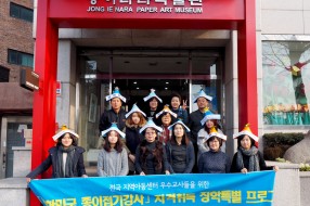 연수 후기 게시물 검색 검색대상 제목 내용 제목+내용 검색어 필수 신명숙 미국 미시건디트로이트 지부장이 전… 신명숙 미국 미시건디트로이트 지부장이 전해온 기쁜 뉴스! 이스턴 미시간대학 정석화 교수와 장선혜 교수의 지도,“종이접기(K-Jongie Jupgi)로 한국을 알리다”‘이스턴 미시간 유니버시티의 한국 학생들이 만든 한국의 날’ 종이문화재단 세계종이접기연합 미국 미시건디트로이트 신명숙 지부장이 이스턴 미시간 대학(Eastern michigan university)에서 매년 개최되는 International week라고 불리우는 국제 행사에서 대한민국 종이접기(K-Jongie Jupgi(Paper folding))을 성공적으로 펼친 소식을 보내왔다. 이곳에서는 매년 행사가 열릴 때마다 각 국에서 온 학생들이 한 주에 하루를 배정받아 대학의 학생회관에서 자국과 자국의 문화를 알리는 행사를 주최해왔다고 한다. 특히 이번 2015 International week에는 행사 개최 이래 처음으로 ‘한국의 날’(11월 19일)이 포함되어 미국에 있는 우리 동포들과 세계인들의 관심이 집중되었다. ‘한국의 날’ 행사는 종이접기와 사물놀이를 통해 한국의 미를 알리는 데 목적을 두고 이스턴 미시간 대학에 재직 중인 정석화 교수와 장선혜 교수의 지도 아래 한인 학생회와 사물놀이 동아리 한소리의 학생들이 참여했다. 또한 우리의 전통 종이접기와 종이문화 및 예술 번영에 기여하고 있는 종이문화재단 미시간 디트로이트 신명숙 지부장과 행사 코디네이터 그레이스 최씨는 이번 행사에서 색종이들의 아름다운 작품과 종이접기 체험을 실시했다. 행사를 이끈 임유정, 정민정 학생을 비롯한 한인 학생회(김아현, 문소정 학생) 그리고 한소리 사물놀이 동아리 회장 윤우경 학생은 “교수님들로부터 들은 말 한마디로 이렇게 한국 문화를 널리 알릴 수 있는 행사를 만들게 되어 기쁘다.”며 “행사를 위해 함께 열심히 노력해주신 학생들과 교수님들 그리고 많은 지원해주신 한국 종이문화재단 분들께 감사인사를 드린다.”고 말했다. 글쓴이: 최고관리자 2016-01-07 지역아동센터 우수 교사들을 위한 「대한민… 지역아동센터 우수 교사들을 위한 「대한민국 종이접기 강사」자격취득 장학특별프로그램 수료식 2015년 12월 30일, 종이문화재단 세계종이접기연합(이사장 노영혜)은 사랑의친구들(회장 김성재)과 함께하는 지역아동센터의 우수 교사들을 대상으로 한 “「대한민국 종이접기강사」 자격취득 장학 프로그램” 수료식을 마쳤다. 이번「대한민국 종이접기강사」자격취득 과정은 종이문화재단의 장학사업으로 10월 14일부터 12주간 종이문화재단 김영순 이사(대한민국 종이접기명인 1호)의 지도로 운영되었으며 참가한 많은 교사들의 적극적인 참여로 큰 호응과 관심 속에 마칠 수 있었다. 이날 수료식에서는 그동안 「대한민국 종이접기강사」 교육과정을 배우면서 느낀 소감문 발표 시간을 가졌고, 더불어 우수한 실력으로 수료를 한 우등생 총 2명(공민숙, 함지희)에게는 우등상을 수여했다. 소감문을 발표한 공민숙 씨는 “평소에 아이들과 종이접기를 하면서 전문적인 지식이 부족해 늘 아쉬워 이번 기회에 당당히 전문 강사로서 아이들에게 종이접기를 재미있고 쉽게 가르칠 수 있을 거란 기대감으로 도전했다.” 면서 “이번 겨울방학에 우리 지역아동센터에서 종이접기 수업시간을 개설했는데, 종이문화재단에서 배운 실력으로 아이들의 창의력과 표현력을 개발시켜 볼 계획이다.”라고 포부를 밝혔다. 이날 사랑의친구들 이정원 사무총장을 비롯하여 종이문화재단 노영혜 이사장, 이준서 사무처장, 김영순 이사, 박광석 이사 등이 참석하여 축하와 격려를 했다. 글쓴이: 최고관리자 2016-01-05 종이문화재단, 의학신문과 종이접기 치료효… 종이문화재단, 의학신문과 종이접기 치료효과 공동 연구키로 종이문화재단 세계종이접기연합(이사장 노영혜)이 의학신문(대표이사 김성주)과 공동으로 종이접기 인지발달 연구 및 아동 심리치료효과에 대한 공동연구를 시행한다. 양 기관은 12월 29일 이와 관련한 논의를 갖고 새해 초 기관 업무협약 체결 후 구체적인 공동 연구에 착수키로 했다. 이날 협의에는 종이문화재단 노영혜 이사장을 비롯해, 김영순 이사, 정규일 이사 겸 대외협력실장이, 의학신문에서는 김원준 경영기획실장, 부설 아이맘상담센터 심효정 소장 등이 참석했다. 협의 후 노영혜 이사장은 의학신문 관계자에게 새해 행운을 기원하는 ‘복주머니 종이액자’를 선물했다. 글쓴이: 최고관리자 2015-12-31 [창업소식] 경기용인구갈지부 오픈 경기용인구갈지부 장은자 지부장 ■ 주 소: 경기도 용인시 기흥구 갈곡로 7번길 6 2층 205호(구갈동) ■ Tel: 010-9258-9196 경기용인구갈지부 장은자 지부장은 종이문화재단에서 「대한민국종이접기강사」로 입문하여 종이접기지도사범마스터, 종이그림아트마스터, 클레이, 북아트, 리본아트, 토탈공예 등의 자격증을 취득했습니다. 장은자 지부장은 또한 중학교 CA강사, 청소년 문화의 집, 초등학교 방과 후 활동강사, 지역아동센터 재능기부활동 등의 활발한 활동을 해오고 있습니다. 또한 장은자 지부장은 2013년 용인교육장 인증 방과 후 학