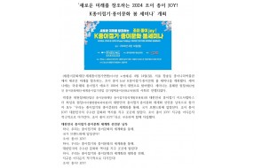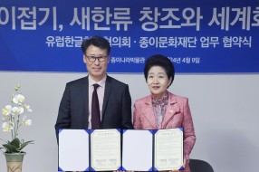연수 후기 게시물 검색 검색대상 제목 내용 제목+내용 검색어 필수 김영만 원장, 고양시립 행신어린이도서관에… 김영만 원장, 도서관주간 어린이 종이접기 프로그램‘김영만 선생님과 함께 해요! 종이접기 이야기’ 참여지난 4월 13일(토), 고양시립 행신어린이도서관이 제2회 도서관의 날 및 제60회 도서관주간을 맞아 인기 애니메이션 캐릭터를 연기한 성우들의 진행으로 '김영만 선생님과 함께해요! 종이접기 이야기' 공연을 열었다. 도서관주간을 기념하는 이 공연에서 아이들은 부모님과 짝을 지어 피구왕 통키, 도라에몽 진구 역 성우들의 연기를 눈앞에서 맛보고, 종이접기의 전설 김영만 선생님과 즐거운 놀잇감 만들기를 배우고 즐길 수 있다. 도서관센터 관계자는 이번 공연으로 어린이들이 도서관에서의 즐거운 경험을 오래 기억하여 도서관과 독서를 가까이하는 어른으로 자라길 기대한다고 말했다. [경인매일] ☞ https://www.kmaeil.com/news/articleView.html?idxno=445802[위클리오늘] ☞ http://www.weeklytoday.com/news/articleView.html?idxno=615223 글쓴이: 최고관리자 2024-04-16 2024 조이 종이 JOY! K종이접기·… [인터뷰365] ☞ http://www.interview365.com/news/articleView.html?idxno=107707[재외동포신문] ☞ http://www.dongponews.net/news/articleView.html?idxno=49227[연합뉴스] ☞ https://www.yna.co.kr/view/PYH20240415117900371?input=1196m[월드코리안] ☞ http://www.worldkorean.net/news/articleView.html?idxno=50972 글쓴이: 최고관리자 2024-04-15 종이문화재단, 유럽한글학교협의회와 업무협… K종이접기, 새한류 창조와 세계화를 위하여종이문화재단·유럽한글학교협의회 업무협약 체결노영혜 (재)종이문화재단·세계종이접기연합 이사장과 이장석(왼쪽) 유럽한글학교협의회 회장이 K종이접기 새 한류 창조와 유럽한글학교 교수학습 개발 등 창의 인성교육과 정체성 함양을 목적으로 하는 업무협약을 체결했다. / 2024. 4. 9 [재단법인 종이문화재단 제공](재)종이문화재단·세계종이접기연합(이사장 노영혜)과 유럽한글학교협의회(회장 이장석)가 4월 9일, 서울 중구 장충동 종이나라박물관에서 유기적인 연대를 확립하고, 상호 공동 발전에 기여하기 위하여 업무협약(MOU)을 체결했다. 두 기관은 △ 유럽한글학교 교수 학습 프로그램 공동개발·운영 및 상호교류 △ K종이접기, 종이문화 분야별 자격증 과정 및 작품공모대회 등 K종이접기 세계화 협력 △ 재단법인 종이문화재단·세계종이접기연합의 종이문화교육원·지부 설립 등 상호협력 △ 기타 양 기관의 공동 발전에 필요하다고 인정되는 사항 등에서 상호 협력하기로 했다.업무협약 체결식에는 노영혜 이사장, 이장석 회장과 함께 「한글의 최전선, 지구촌 한글학교 스토리」 책의 저자 박인기 명예교수(경인교육대학교)와 공동 저자 김봉섭 (재)종이문화재단 자문위원(인하대학교 정책대학원 초빙교수), 한상인 우리문화세계로 대표(한지살리기재단 자문위원), 이형호 한지살리기재단 상임 이사, 김영순 대한민국 종이접기 명인, 지영헌 (재)종이문화재단 교육전문위원, 김성민 (재)종이문화재단·세계종이접기연합 브라질 상파울루지부 지부장, 김영일 (재)종이문화재단·세계종이접기연합 사무국장, 신재민 ㈜종이나라 해외사업본부 상무가 참석하여 힘을 모았다. (재)종이문화재단·세계종이접기연합은 2016년 프랑스 파리 ‘엑스포 포르트드 베르사유’에서 개최된 한불수교 130주년 기념 파리국제도서전 한국주빈국가관에서 K종이접기 예술작품과 K종이접기 강사 책을 첫 선보이고, 우리 ‘종이접기(K Jong ie Jupgi) 한류’의 유럽진출 교루보를 마련하고 파리한글학교를 방문, 상호 협약을 체결한 바 있다.그리고 2018년 독일 프라이부르크에서 개최된 ‘국제 종이접기 교수법 컨퍼런스’에 한국 주빈국 대표 단체로 참가하여 독일, 프랑스, 영국 등 유럽 각국에서 참가한 종이접기 교육자, 작가, 예술가들에게 유구한 K종이접기 역사와 우수한 종이문화를 알리면서 친선의 장을 펼치며 교류를 이어왔다. 노영혜 이사장은 “한국 문화가 세계로 울려 퍼지고 있는 요즈음 한국문화의 원형이며 핵심 가치인 홍익인간 이념이 회자되고 있다. 천·지·인 삼신 사상과 널리 인간세계를 이롭게 한다는 홍익인간 이념의 뜻이 담겨있는 고깔은 Korea, K종이접기의 모태이다. 유구한 한국 역사와 문화가 담겨있는 K종이접기는 두뇌 개발, 창의 인성교육과 한글 교육은 물론 수학·과학·예술·산업으로 발전되고 있다. 업무 협약을 한 유럽한글학교협의회와 (재)종이문화재단·세계종이접기연합의 관계 증진으로 K종이접기와 새 한류 창조, 세계화를 위해 문화예술 교육 협력을 확대해 나갈 것이며, 유럽 각국의 한글학교에서 대한민국의 미래를 위해 세계에 부상하는 차세대 동포들로 일구어내려고 헌신하는 교사들의 열정과 소명에 깊은 감사를 드리며, 앞으로 그 힘을 모아 우리나라의 통일과 세계 평화에 이바지 되기를 바란다.”고 말했다. 이장석 회장은 “유럽한글학교협의회가 관할하는 유럽 35개국, 130여 개의 한글학교 15,000명 동포 학생들에게 자랑스러운 K종이접기 문화와 뿌리 깊은 역사를 바로 알려 자긍심을 키우고 한글과 한국 문화 교육 발전을 