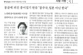 연수 후기 게시물 검색 검색대상 제목 내용 제목+내용 검색어 필수 YTN '글로벌 코리안‘ 방영 YTN '글로벌 코리안‘ 방영 방송일시 1방- 2012. 10. 13 11: 40 2방-19:38 3방- 10. 14 01:30 종이문화재단은 몽골 울란바타르 대학에서 「2012 대한민국 종이접기문화 세계화 한마당」을 열었습니다. 150여 명이 참가한 이번 대회에서는 ‘한국ㆍ몽골 국제교류 종이접기작품대회’와 시상식, 대한민국 종이접기강사 양성을 위한 강의, 그리고 가족이 함께하는 ‘세계평화기원 소망의 종이비행기 날리기 대회’ 등이 열렸습니다. 종이문화재단과 몽골 울란바타르대학이 공동주최한 이 행사는 두 나라의 우호 증진과 우리 종이접기 문화를 알리기 위해 지난 2010년부터 매년 실시 되었으며, 450명의 「대한민국 종이접기 강사」가 탄생되어 몽골에서 새로운 종이접기 한류를 만들어 나갈 것으로 기대합니다. [방송화면 캡쳐 1][방송화면 캡쳐 2][방송화면 캡쳐 3.][방송화면 캡쳐 4.] [방송화면 캡쳐 5.][방송화면 캡쳐 6.] 글쓴이: 최고관리자 2012-10-15 몽골에 퍼진 종이접기 한류 "종주국, 일… . 글쓴이: 최고관리자 2012-10-15 제 3회 '2012 대한민국 종이접기문화… 제 3회 '2012 대한민국 종이접기문화 세계화 한마당' 제3회 '2012 대한민국 종이접기문화 세계화 한마당'이 지난 4일 몽골의 명문사립대학교인 울란바타르대학교(총장 최기호)에서 150여명의 참가자들이 참가한 가운데 성황리에 열렸다. 종이문화재단(이사장 노영혜)이 몽골 울란바타르대학교와 공동으로 주최하는 이 행사는 대한민국 종이접기 · 종이문화의 우수성과 한국 종이접기문화 세계화, 한국-몽골의 우호증진과 세계 평화를 위해 지난 2010년부터 매년 개최돼 왔다. ‘우수한 우리의 종이접기, 종이문화의 세계화와 평화운동’이라는 주제로 열리는 올해 대회는 세 가지의 행사로 나눠 진행됐다. 특히, 4일 오후부터 시작된 참가자 접수에는 150여명의 접수자들이 한꺼번에 몰려 몽골에서의 종이접기 열풍을 실감할 수 있었다. 이날 열린 첫 번째 행사에서 '대한민국 종이접기 강사'를 양성하는 자격취득과정이 실시됐다. 이 과정에는 울란바타르대학교 유아교육과 교수를 비롯한 몽골 현지 유치원 및 초․중등학교 현직교사, 한국국제협력단(KOICA) 해외봉사단 등 150명이 참석했으며, 종이접기 심화교육과 검정과정을 거쳐 '대한민국 종이접기강사' 자격증을 수여하게 된다. 두 번째 행사는 한국의 종이접기와 종이문화를 소개하는 작품전시회로 한국 종이접기의 아름다움과 그 우수성을 몽골 국민들에게 널리 알리고, 제3회 한·몽 종이접기작품대회를 통해 한국문화와 몽골문화가 조화롭게 융합된 우수작품을 시상해 양국 교류협력의 기반을 넓혀가는 데 기여하게 된다. 세번째 행사는 인류문명의 물질이며 평화를 상징하는 종이를 매개체로 세계평화운동의 확산을 위해 처음 열리는 ‘제1회 세계평화기원 소망의 종이접기비행기날리기대회’는 강사 자격과정에 참가한 수강생 가족들을 대회에 참가토록 해 몽골 내 새로운 한류 바람을 일으키는 뜻 깊은 행사로 자리잡게 될 것이라고 주최 측은 기대하고 있다. 종이문화재단 노영혜 이사장은 "한국과 몽골의 친선과 화합의 상징으로서 우리의 종이접기문화를 몽골 현지에 전파하고자 매년 개최한 행사가 앞으로도 한국과 몽골이 오랜 친구처럼 동반자 관계를 더욱 공고히 가져나갈 것으로 기대된다"고 말했다. 특히 "올해까지 몽골에서 3년간 배출된 450여명의 '대한민국 종이접기강사'들이 그 중추적 역할을 해 나갈 것이라고 믿는다"고 덧붙였다. * 언론매체 보도현황 1. 연합뉴스- '몽골에 한국 고유의 종이접기문화 전파한다' 2. 중앙통신뉴스- '몽골 울란바토르에서 '2012 대한민국 종이접기문화 세계화 한마당'3. 한국NGO뉴스- '몽골, '2012 대한민국 종이접기문화 세계화 한마당' 4. 재외동포신문- '몽골, 한류열풍 이어 한국종이접기 열풍~'5. 중앙일보- '몽골에 퍼진 종이접기 한류 "종주국, 일본 아닌 한국" 글쓴이: 최고관리자 2012-10-09 종이문화재단, 대한사회복지회 주최 ‘제1… 종이문화재단, 대한사회복지회 주최 ‘제1회 닮은꼴 캠프’ 참여 종이문화재단은 지난 8월 6일부터 13일까지 충남 서산에서 열린 ‘제1회 닮은꼴 캠프’에 입양청소년 대상 문화체험의 일환으로 종이접기교육프로그램을 운영하였다. ‘닮은꼴 캠프’는 대한사회복지회가 주최하고 재미한국학교협의회, 한국입양홍보회, 재미한국학교중남부지역협의회가 후원하는 행사로, 자신과 닮은 외모와 입양된 점 등 서로 닮은 점이 있는 국내ㆍ외 입양인들이 새로운 인연을 맺고 자신의 자아정체성을 찾아갈 수 있는 장을 제공하고자 마련되었다. 본 캠프에는 국내ㆍ외 입양인 42명과 자원봉사자 13명 등 총 64명이 참가하여 충남과 서울에서 총 7박 8일 간의 일정으로 진행되었다. 캠프기간동안 입양청소년들은 오전에는 영어로 의사소통을 하며 체험활동에 참여, 오후에는 야외활동놀이, 전통문화체험 그리고 공작시간 등 다양한 활동에 참여하며 새로운 문화와 서로를 알아가는 시간을 가졌다. 종이접기반을 진행한 천안동남구종이문화교육원 박정숙 원장은 이들에