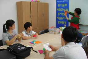 연수 후기 게시물 검색 검색대상 제목 내용 제목+내용 검색어 필수 미래를 주도해 나가는 「젊은 유통인들의 … 미래를 주도해 나가는 「젊은 유통인들의 모임」에서 “우리의 종이접기 종이문화의 세계화를 위하여!” 강연 지난 6월 15일 종이나라박물관에는 차세대 대한민국의 미래를 주도해 나가는 젊은 유통인들의 정기회 모임이 있었다. 이날 종이문화재단에서는 노영혜 이사장이 참석하여 ‘우리의 종이접기 종이문화의 세계화를 위하여’ 라는 주제로 강연을 하였다. 특히 노영혜 이사장은 “현재의 종이접기ㆍ종이문화는, 우리의 옛 전통과 옛 조상의 혼과 얼을 계승하여, 앞으로는 젊은 세대들이 주도하여 전 세계로 펼쳐 나가는 운동을 해야 한다”고 강조했다. (재)종이문화재단 노영혜 이사장이 강연을 하고 있다. 이어서 ㈜종이나라 전략기획실 정규일이사가 현재 세계 각국의 종이문화활동에 대해 피력하는 시간을 갖고 직접 종이접기 시연을 하며 함께 접어보는 즐거운 시간을 가졌다. ㈜종이나라 전략기획실 정규일 이사가 젊은 유통인들에게 종이접기 시연을 선보이고 있다. 젊은 유통인들을 대표하여 SCG그룹 김요한 기획조정실장 으로부터 감사의 뜻이 담긴 웹툰 만화가 윤서인 작가의 작품을 전달 받고 있다. 글쓴이: 최고관리자 2012-06-16 종이문화재단, KOICA 해외봉사단 종이… 사진은 KOICA 71기 해외봉사단원들이 6월 2일 종이접기연수가 끝난 후 자신이 만든 ‘청사초롱’ 작품을 들고 강사선생님(수학종이접기교육협회 오영재 회장)과 함께 기념사진을 촬영한 모습이다. 종이문화재단, KOICA 해외봉사단 종이접기연수 실시 종이문화재단과 업무협약기관인 한국국제협력단(KOICA:Korea International Cooperation Agency) 71기 해외봉사단 종이접기 연수가 지난 5월 19일 1차, 5월 26일 2차에 이어 6월 2일 최종 3차 과정을 서초구 KOICA 해외봉사단 교육센터에서 실시 됐다. 이날 연수에 참가한 봉사자들은 색종이로 간단히 접어 우리나라를 나타낼 수 있고 또 개발도상국 주민들과 함께 즐길 수 있는 재미있는 유익한 내용이라며 모두가 즐거워했다. 이번 71기 해외봉사단원들은 3차 연수과정을 끝으로 7월에 네팔, 라오스, 스리랑카, 캄보디아, 필리핀, 르완다, 이집트, 탄자니아, 튀니지, 도미니카공화국, 에콰도르 등으로 파견되어 2년간 봉사할 예정이다. 종이문화재단에서는 2010년 7월부터 코이카 해외봉사단을 대상으로 종이접기 연수를 실시해 왔으며, 연수에 참가한 봉사단들은 세계 각국(개발도상국)에 파견되어 종이접기를 통해 우리나라의 종이문화를 널리 세계 각 국에 전파하고 있다. 글쓴이: 최고관리자 2012-06-15 종이문화재단, 대한요트협회 감사패 수상 종이문화재단, 대한요트협회 감사패 수상 종이문화재단(이사장 노영혜)은 지난 8일 서울 올림픽파크텔에서 대한요트협회(회장 박순호) 관계자 등이 참석한 가운데 제5회 2012 코리아컵 국제요트대회의 성공적 개최에 기여한 데 대한 감사패를 수여받았다. 본 재단은 이번 2012 코리아컵 국제요트대회에서 '독도사랑'을 주제로 각자의 소망을 접어 바다에 띄우는 「독도사랑 소망의 종이배띄우기」행사와, 독도앞바다에 종이거북선을 띄우는 행사를 주관하였다. 글쓴이: 최고관리자 2012-06-13 종이문화재단, 어린이재단과 손잡고 ‘어린… 지난 6월 1일 인천연수사회복지관에서 열린 ‘종이접기 급수교실’ 수업장면. 종이문화재단, 어린이재단과 손잡고 ‘어린이 종이접기급수교실’ 열어 어린이 자격증 시대, 종이접기 전문가를 꿈꾼다. 종이문화재단(노영혜 이사장)이 초록우산 어린이재단과 함께 사회복지관 방과후교실로 ‘어린이 종이접기 급수교실’을 운영키로 하고, 참여를 희망하는 재단산하 사회복지관들의 신청을 받고 있다. 이 프로그램에 참여하는 어린이들은 평소 생활주변에서 쉽게 접하는 놀잇감이나 생활소품, 그리고 캐릭터, 동물, 꽃 등을 종이를 이용, 쉽고 재밌게 접는 법을 익히게 된다. 종이접기는 특히 어린이들의 사고력, 창의력 그리고 집중력 향상을 위한 두뇌 계발과 건강한 인성 함양에도 크게 도움이 된다는 것으로 이미 널리 알려져 있다. 주1회 3개월 과정으로 운영되도록 구성되어 있으나 방학 기간중 집중 이수를 희망하는 복지관이 있을 경우 단기 집중반도 운영할 계획이다. 이미 지난 1일 인천연수사회복지관에서 첫 종이접기 급수교실 수업이 열렸다.(사진) 이 수업을 이끌고 있는 이숙영 강사(종이문화재단 인천계양종이문화교육원)는 ‘3개월간 수업에 적극 참여한 학생들이 이후에도 꾸준하게 온-오프라인을 통해 종이접기 학습을 계속한다면, 부모님들께서는 자녀들이 사고력과 집중력, 창의력 면에서 몰라보게 발전해 가는 모습을 보게 될 것’이라고 말했다. 노영혜 종이문화재단 이사장은 ‘이번 급수교실을 수료한 학생에게는 어린이 종이접기 3급 자격증이 무상 수여될 것’이라며 ‘복지관과 같은 비영리 단체들이 최소의 비용으로 종이접기나 종이공예 교실을 지속적으로 활용할 수 있도록 적극 지원해 나갈 것이다’라고 밝혔다. 종이문화재단과 초록우산 어린이재단은 지난해 7월 어린이의 문화예술교육과