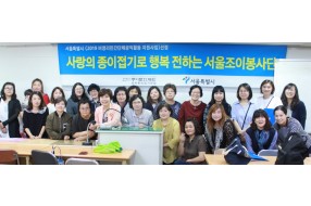 연수 후기 게시물 검색 검색대상 제목 내용 제목+내용 검색어 필수 제14회 국회 동심한마당에서 K-종이접기… 제14회 국회 동심한마당에서 K-종이접기와 고깔축제 인기 H2O품앗이운동본부(이사장 이경재)가 주최하는 제14회 동심한마당이 5월 25일 오전 10시부터 국회 잔디마당에서 열렸다. 개막식에서 참석 귀빈들과 어린이대표들은 종이문화재단에서 후원한 종이비행기에 각자의 소망을 담아 하늘로 힘차게 날렸다 우리 사회가 순수하고 아름다운 동심을 회복하자는 취지에서 2005년부터 매년 열리고 있는 국회 동심한마당은 이날 참가단체의 퍼레이드와 군악대와 의장대 시범, 어린이 합창단, 오케스트라 등 공연행사 및 각종 체험행사, 이승엽 팬사인회 등이 종일 이어졌다. 협약단체로 이 행사를 후원하고 있는 종이문화재단 세계종이접기연합(이사장 노영혜)은 고깔축제 종이접기체험 부스를 열고, 어린이들과 함께 특별 제작된 대형 종이로 고깔을 만들어 쓰고, 작은 종이로 고깔을 접어 고깔함에 넣으며, 한반도의 평화통일과 세계평화를 기리는 마음도 함께 모았다. 이날 체험에는 종이문화재단 한국사회복지문화개발협회의 정명숙 회장과 주찬숙 부회장, 한국종이조형교육협회의 황윤주 회장을 비롯한 여러 지도강사들이 재능기부 참여를 했다. 노영혜 이사장은 “매년 어려운 가운데 동심한마당 행사를 성공적으로 개최하는데 헌신하시는 H2O품앗이운동본부의 이경재 이사장님과 장문석 부이사장님께 깊이 감사드리고, 그 열정과 노고로 동심한마당에 참여하는 어린이와 청소년들이 아름답게 동심을 간직하며 꿈을 키워갈 수 있을 것” 이라고 말했다. 정명숙 회장은 광진종이문화교육원 회원들과 함께 24일 광진구 능동 어린이대공원에서 열린 ‘제21회 SH어린이그림그리기대회“에서 이 대회에 참가한 5백여명의 어린이들을 위한 종이접기체험부스를 운영해 큰 인기를 끌었다. 글쓴이: 최고관리자 2019-05-27 종이문화재단 평생교육원, 『시니어조이아트… 종이문화재단 평생교육원, 『시니어조이아트지도사』 양성과정 개강 ‘100세시대 건강지킴이 『시니어조이아트지도사』 양성과정’ 첫 수업이 지난 5월 24일 서울 장충동 종이문화재단 평생교육원에서 있었다. 시니어조이아트지도사 교육과정은 서울특별시 주관, ‘2019 서울특별시, 시민제안 평생학습프로그램공모사업’으로 선정된 수업으로 늘어나는 노년층이 최대의 적인 치매없이 건강과 행복한 생활을 즐길 수 있도록 뇌와 손이 협응작용에 효과적인 종이접기를 기반으로 미술, 음악, 놀이 등을 복합적으로 가미해 지도하는 전문 인력을 양성하는 과정이다. 종이문화재단 평생교육원(원장 김영만)이 주관하는 이 교육과정은 정명숙 종이문화재단 한국사회복지문화개발협회장의 지도로 16주간 매주 한 차례씩 수업이 진행되며, 후반기에는 지역사회를 위한 재능기부 봉사활동도 펼칠 예정이다. 노영혜 종이문화재단 세계종이접기연합 이사장은 “시니어조이아트는 노년층이 급증하는 고령사회에서 전문적으로 이 분들에게 교육과 돌봄서비스를 함께 제공하는 평생교육 분야로 갈수록 관심과 수요가 많아지고 있다는 것이라는 점에서 경력단절 여성의 사회 재진출 큰 도움이 될 것으로 기대한다”고 말했다. 글쓴이: 최고관리자 2019-05-24 네팔 히말라야 오지 어린이들에게 K-종이… 네팔 히말라야 오지 어린이들에게 K-종이접기로 꿈과 희망을, 종이문화재단 - 엄홍길휴먼재단 MOU 체결 세계 8천 미터 고봉이 즐비한 네팔 히말라야 산악지역 어린이들과 현지 교사들에게 대한민국 종이접기문화예술 창의교육이 시행된다.종이문화재단 세계종이접기연합(이사장 노영혜)은 5월 22일 오후 서울 장충동 종이나라박물관에서 엄홍길 휴먼재단(이사장 이재후, 상임이사 엄홍길)과 이를 위한 업무협약을 체결했다. 엄홍길 휴먼재단은 2009년부터 네팔 오지마을에 16개의 초등학교를 건립하였고, 이 지역 난치병 어린이의 한국 이송치료, 히말라야 의료봉사단과 자원봉사단 파견 등 열악한 여건의 네팔 산악지역 어린이들과 그 가정에 희망의 날개가 되어왔다. (사진은 2019년 2월 네팔 캘러리 지역 5차 휴먼스쿨 2층 준공식 사진 ; 엄홍길 휴먼재단 홈페이지 참조)종이문화재단은 휴먼재단에서 주관하는 현지 파견 봉사단원들을 위한 종이접기교육과 종이나라(대표이사 정도헌) 협찬으로 재료를 지원하고, 단계적으로 네팔 현지에서 교사들을 위한 「대한민국 종이접기강사교육세미나」와 어린이들을 위한 「대한민국 어린이종이접기마스터」장학교실, 「종이문화예술작품대회」 등을 개최키로 했다.이날 협약식에는 엄홍길휴먼재단의 이영주 실장, 종이문화재단에서는 박광석 이사, 이준서 사무처장이 자리를 함께했다. 노영혜 이사장은 “세계의 지붕 히말라야 네팔의 교사와 어린이들에게 우리의 종이접기 (K-Jong ie Jupgi)는 즐겁고 행복한 놀이로서 뿐만 아니라, 문화예술교육과 특히 아이들의 수학 과학적 사고력을 향상시키는 창의 교육이란 점에서 대단히 중요하고 효과적인 교육 콘텐츠가 될 것”이라며, “K-종이접기가 지속적으로 펼쳐질 수 있도록 적