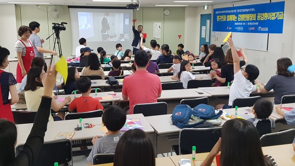 김영만 종이문화재단 평생교육원장의 <서울 중구민을 위한 공감종이접기교실>818일 서울 중구청소년수련관(관장 박현수)에서 열렸다. 이날 특강은 서울 중구청이 주관하는 <2018지역문화육성지원사업>으로 선정 운영중인 종이문화재단 세계종이접기연합(이사장 노영혜)의 종이문화예술아카데미 운영사업 주민 특별프로그램으로 마련되었다.
