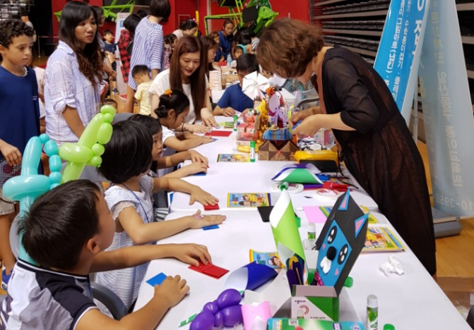 종이문화재단 세계종이접기연합(이사장 노영혜)에서는 엄마, 아빠와 함께 체육관을 찾은 다문화가정 어린이들을 위한 종이접기체험부스를 운영했다. 배혜진 재단 경기일산동구종이문화교육원장과 황윤주 재단 한국종이조형교육협회장이 여러 자원봉사 선생님들과 함께 재능기부 봉사를 이끌었다. 아이들은 선생님들과 함께 종이나라(대표 정도헌 회장)에서 후원한 나라풀과 색종이로 이색 종이비행기를 접어 날리기도 하고, 스스로 만든 태극 부채로 더위를 식히며 즐거운 시간을 가졌다.