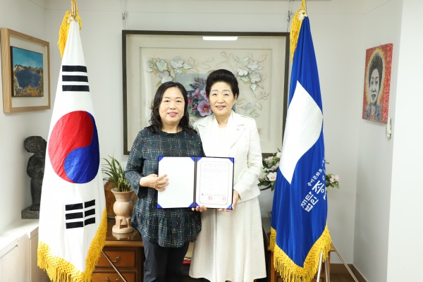 사진 오른쪽 노영혜 이사장, 왼쪽 최영자 종이문화재단 아르헨티나 지부장