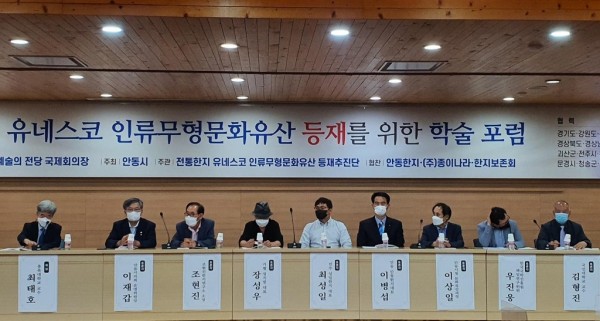 이병섭 안동한지 대표는 안동한지의 역사와 제조 공정, 납품·성적서 등을 소개하면서 "전통한지가 독자적 기술과 문화적 차별성이 있고, 보존도 탁월하다"며 "인류무형유산으로 등재돼야 한다"고 말했다.