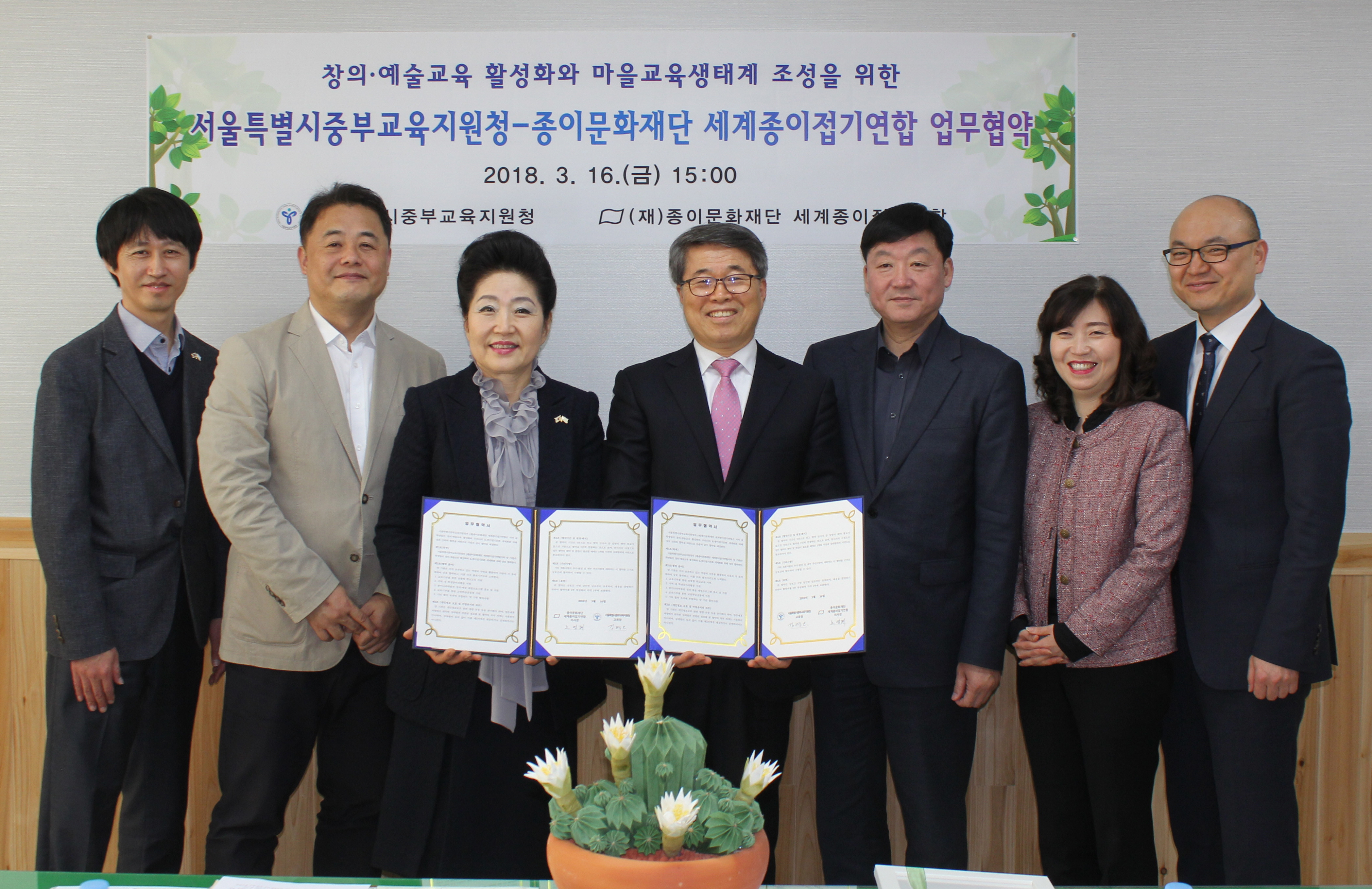종이문화재단 세계종이접기연합(이사장 노영혜)은 서울특별시교육청산하 중부교육지원청(교육장 김 병 오)316일 학생들의 창의 인성 예술교육 활성화 지원을 위한 업무협약을 체결했다.