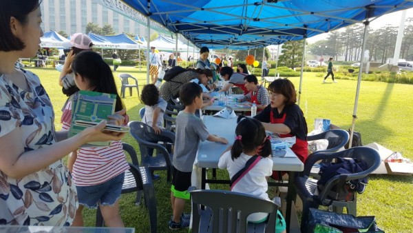 이날 부스에서는 어린이들에게 대형 고깔을 접어 머리에 쓰고 종이나라 색종이로 작은 고깔을 접어 준비된 고깔함에 넣는 체험을 운영했다. 체험을 완수한 어린이들에게는 주최측에서 제공한 스탬프 도장을 미션지에 찍어주었고, 스탬프 도장을 받기 위한 아이들로 종일 북새통을 이뤘다.