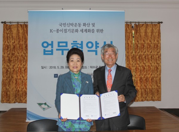 종이문화재단 세계종이접기연합(이사장 노영혜)이 국민과 함께 귀중한 문화유산의 취득과 보존을 위해 힘쓰고 있는 문화유산 국민신탁(이사장 김종규)와 5월 29일 덕수궁 중명전에서 협약을 체결했다.